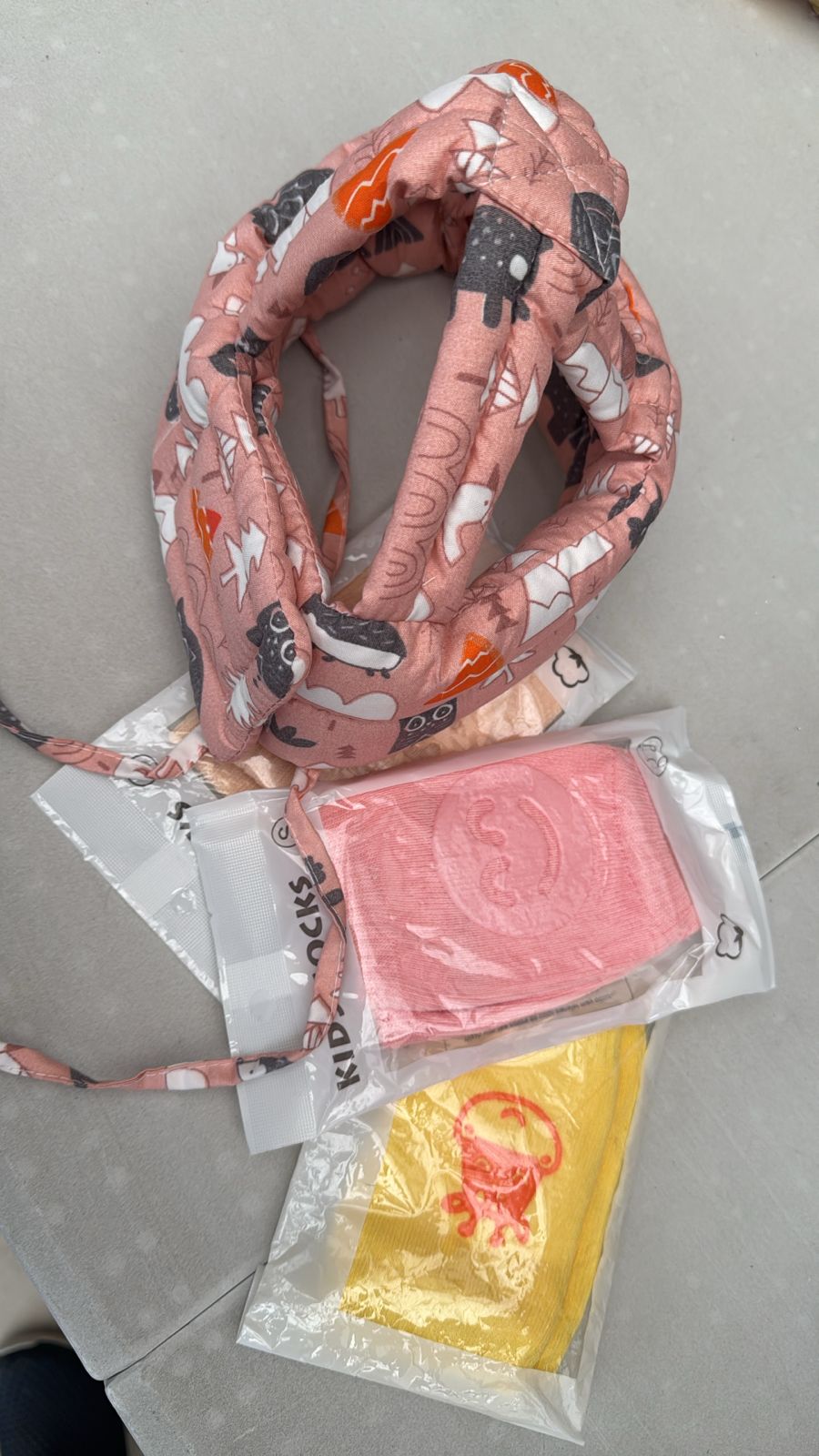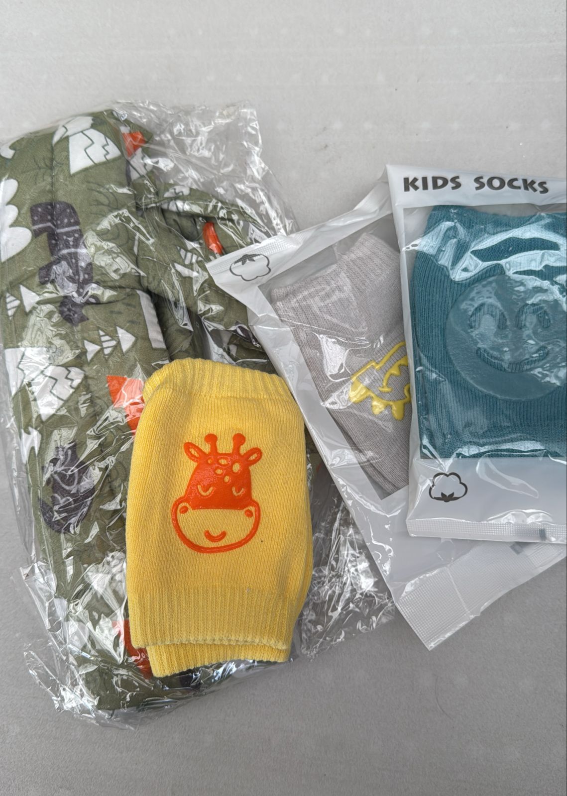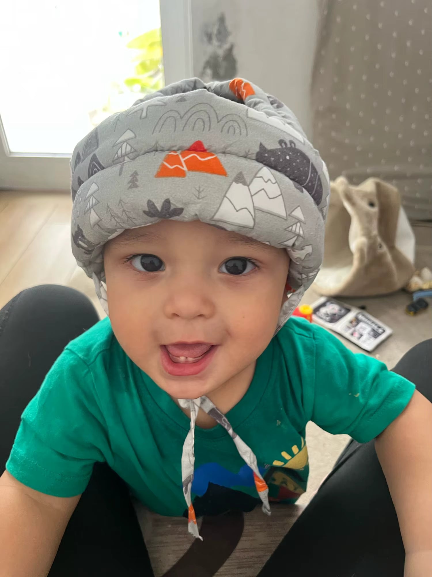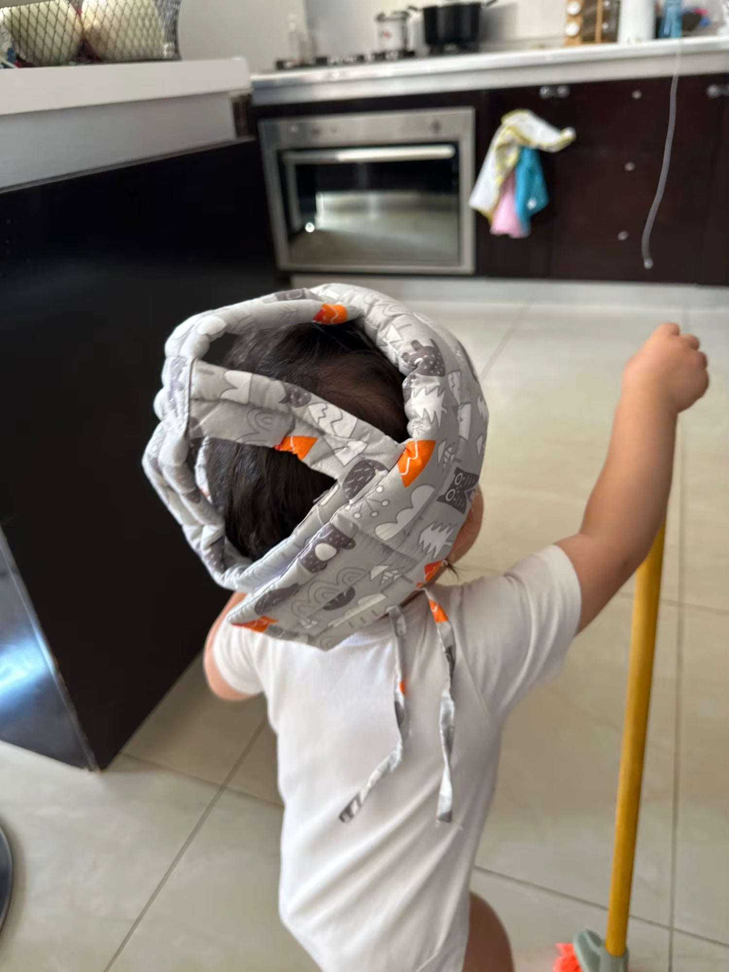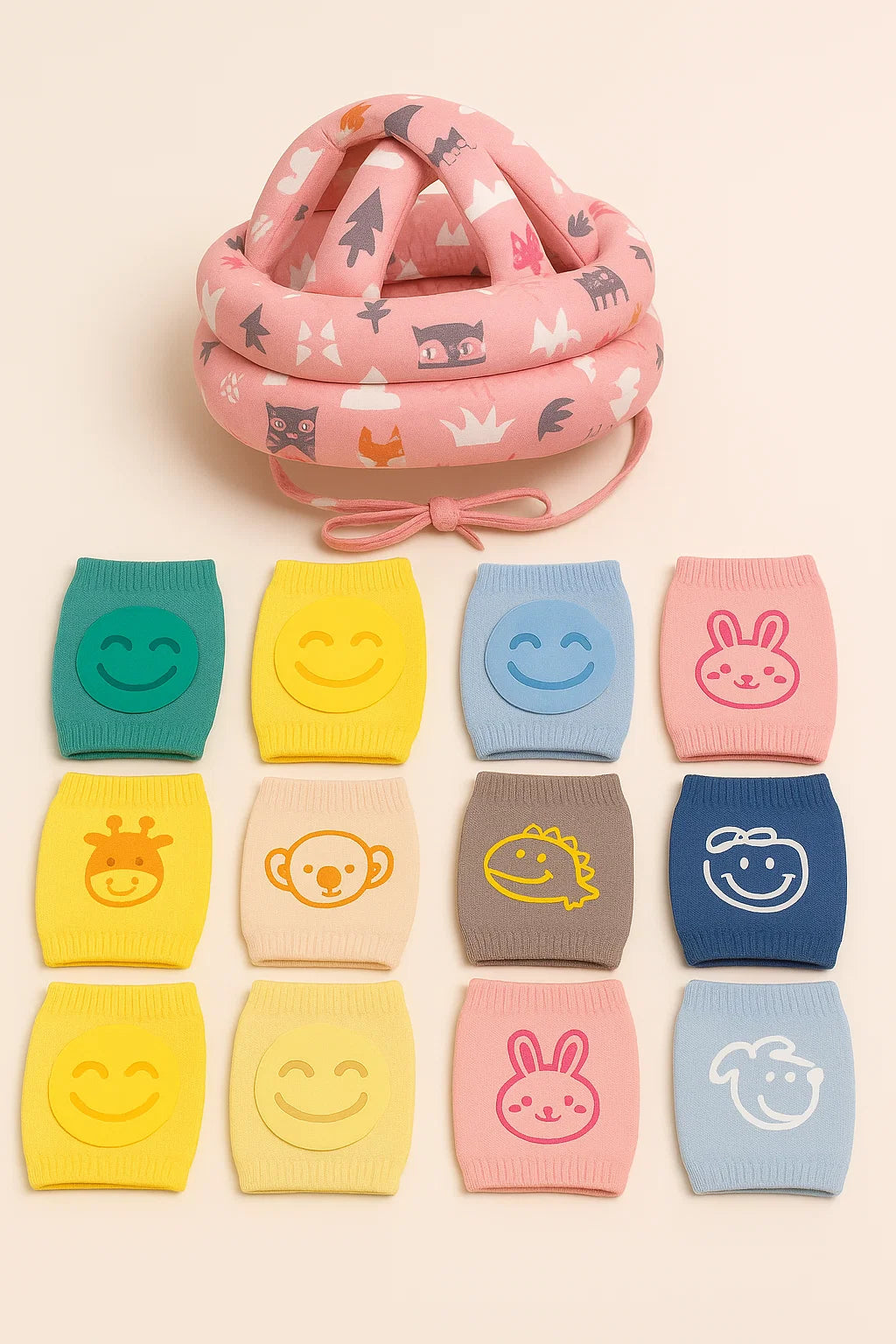 Simplemente coloca el casco sobre la cabeza de tu bebé y las rodilleras en sus rodillas. El diseño flexible y cómodo asegura que se ajusten bien sin incomodarlo, brindándole la protección que necesita mientras juega y explora.